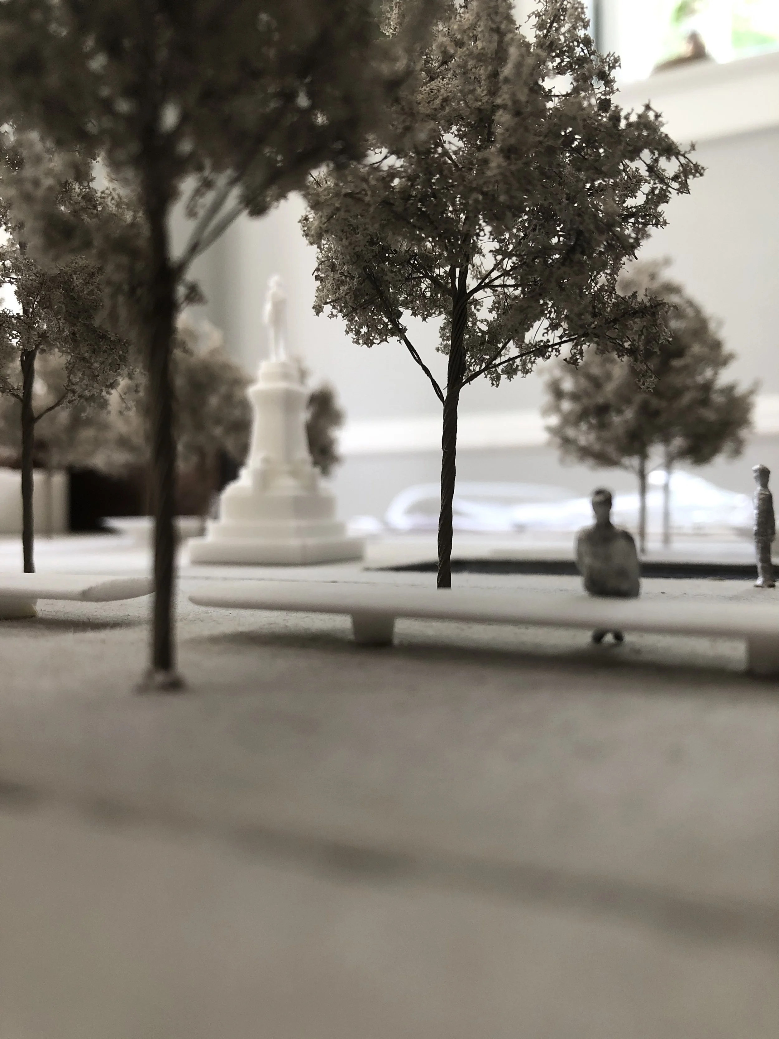 Rather than erasing the monument, the design strategically relocates it within an interpretive setting that reshapes how visitors encounter the object. Planting beds encircle the statue and create areas for rest and contemplation. This move de-emphasizes the monument and presents it as a historical artifact within a broader narrative framework.