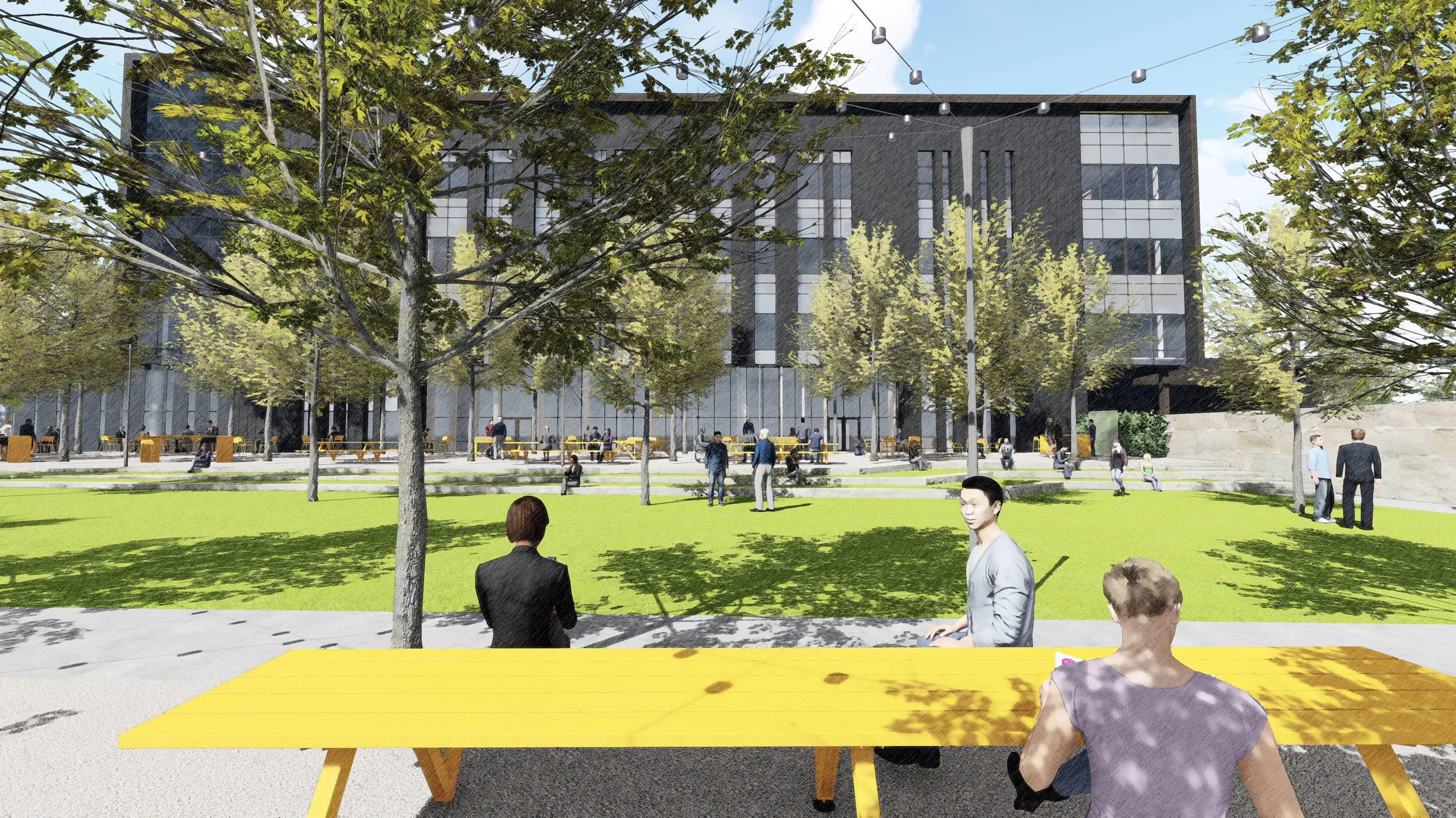 The design for the J.B. Hunt Training and Technology Center provides employees and visitors a 21st Century work environment, transforming underutilized spaces outside the building into hubs of activity that provide staff and visitors comfortable places to work, dine and exercise outside. J.B. Hunt selected OLIN, in collaboration with Miller Boskus Lack Architects to transform this new part of the campus into a destination for outdoor activity. OLIN worked to understand the values of J.B. Hunt employees and ensure their ideas were represented in the design. OLIN’s plan for the space, divided into multiple outdoor rooms, responds to the rigid geometry of the building, while at the same time providing a variety of unique outdoor space for all to enjoy. The design utilizes allees of trees to create a sense of enclosure and much needed shade.