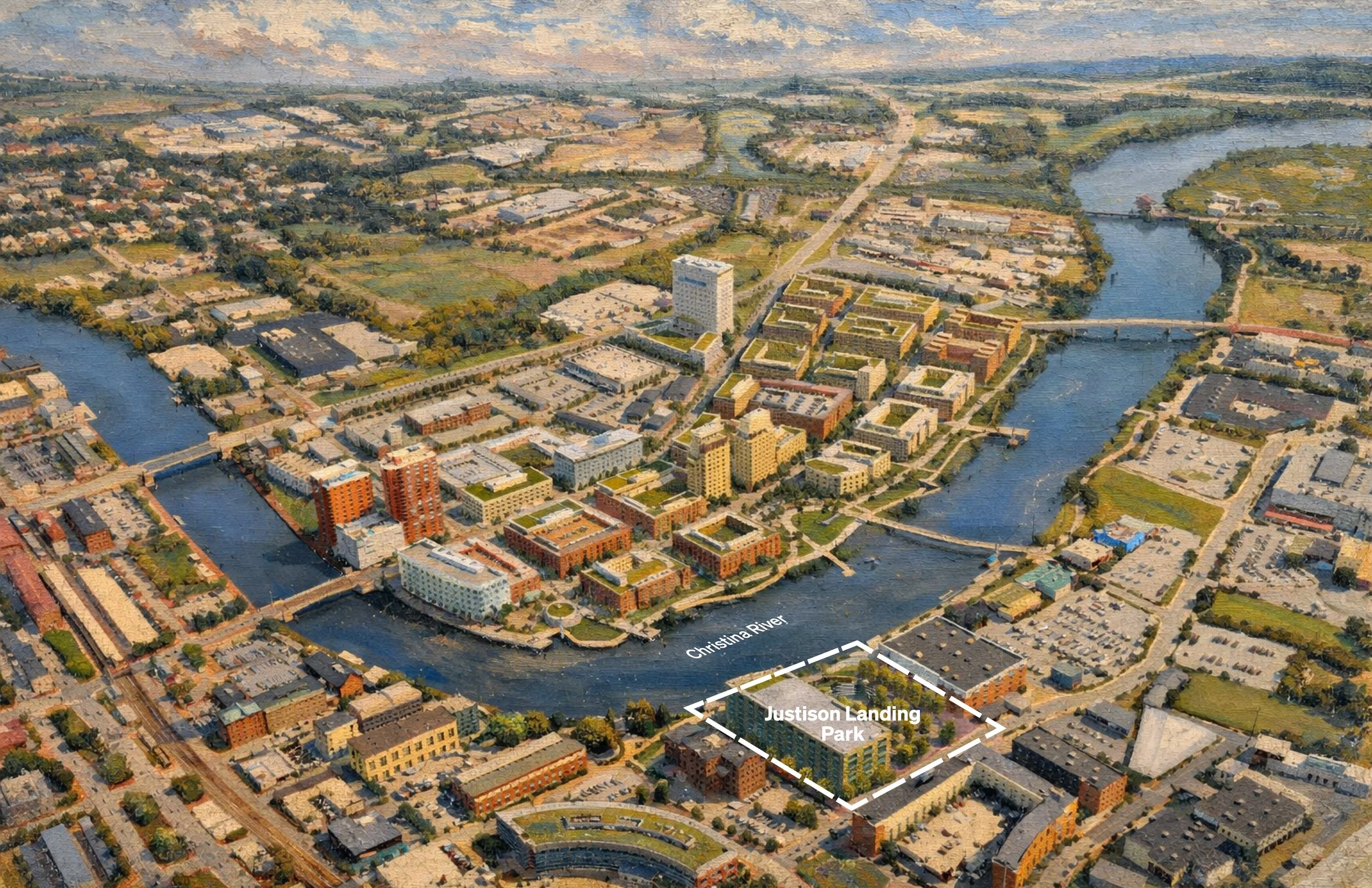 Justison Landing Park transforms a critical edge along Wilmington’s Christina River into an active public landscape rooted in one of the most defining geographies of the eastern United States, the Atlantic Seaboard Fall Line.