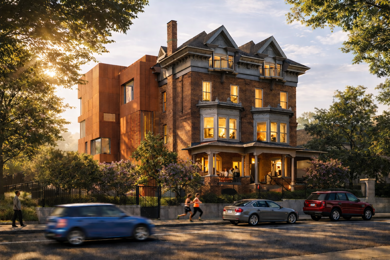 The new Meeting and Guesthouse at the University of Pennsylvania will welcome important guests to campus, provide a place for strategic meetings and trustee gatherings, include touch-down space for visiting dignitaries, and host special events. The project transforms a pair of late Victorian townhouses into a 21st century destination that completes a new precinct for visitors to campus, including the adjacent President’s House, the Perry World House, and the Kelly Writers House.