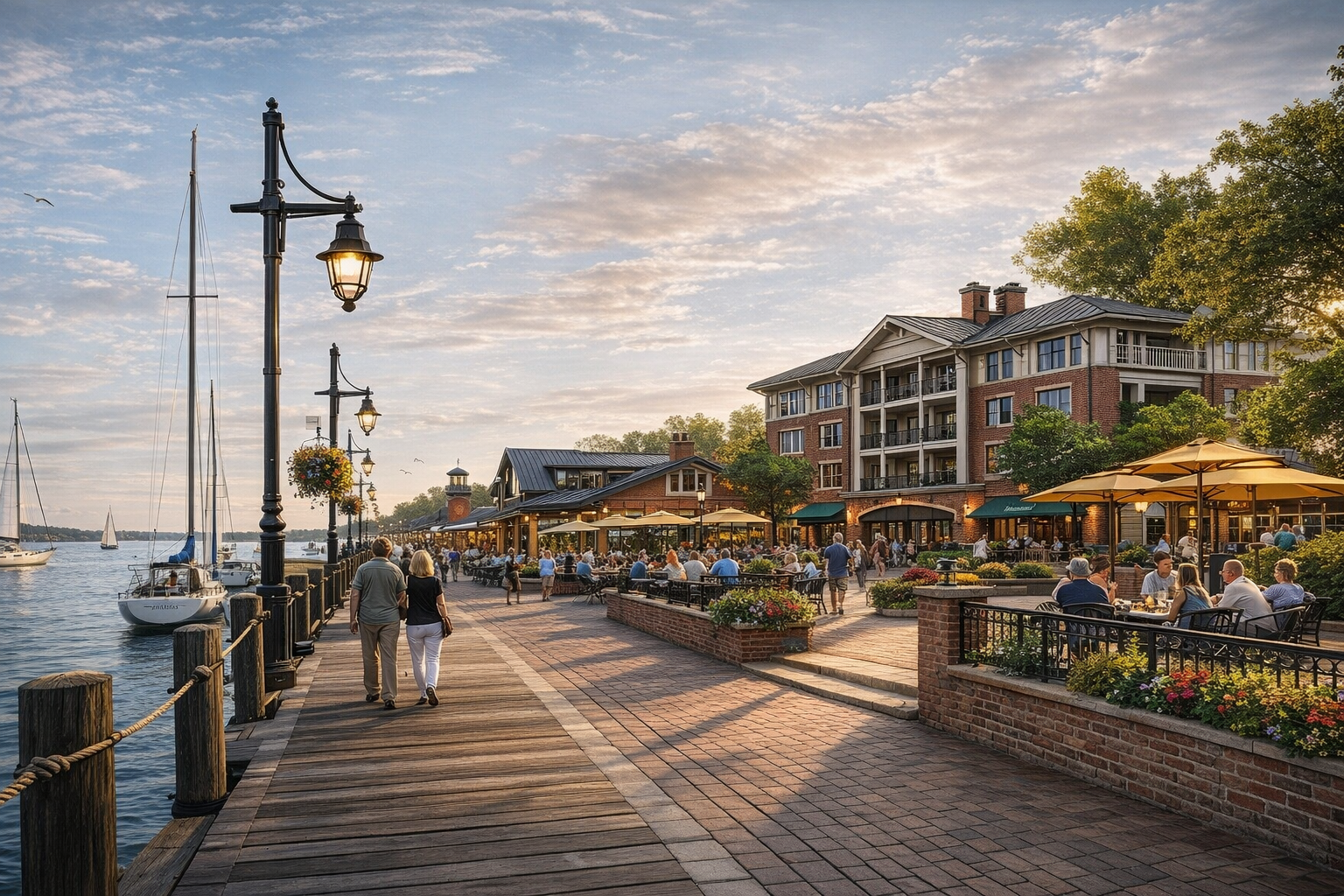 of an expanded maritime quarter and marina area providing marina slips and vessel floats, dockmaster area and other amenities; establishes a broader network of waterfront parks and venues; strengthens connectivity with downtown through the opening of street ends and roadway reconfiguration; and introduces strategic new development initiatives