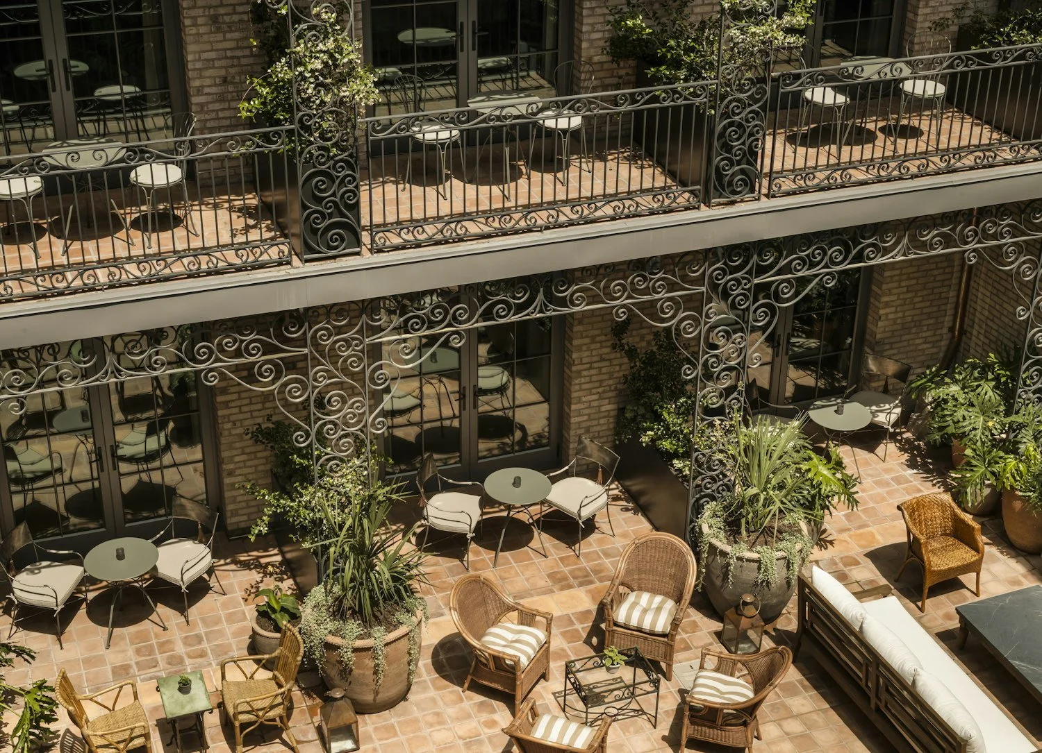 Designed to fit seamlessly into the historic fabric of Upper King Street, The Nickel Hotel merges tradition with innovation. An intimate central courtyard, adorned with ornate wrought iron balconies, lush plantings, features a custom water fountain and an outdoor fireplace to serve as a perfect place to gather in all seasons.