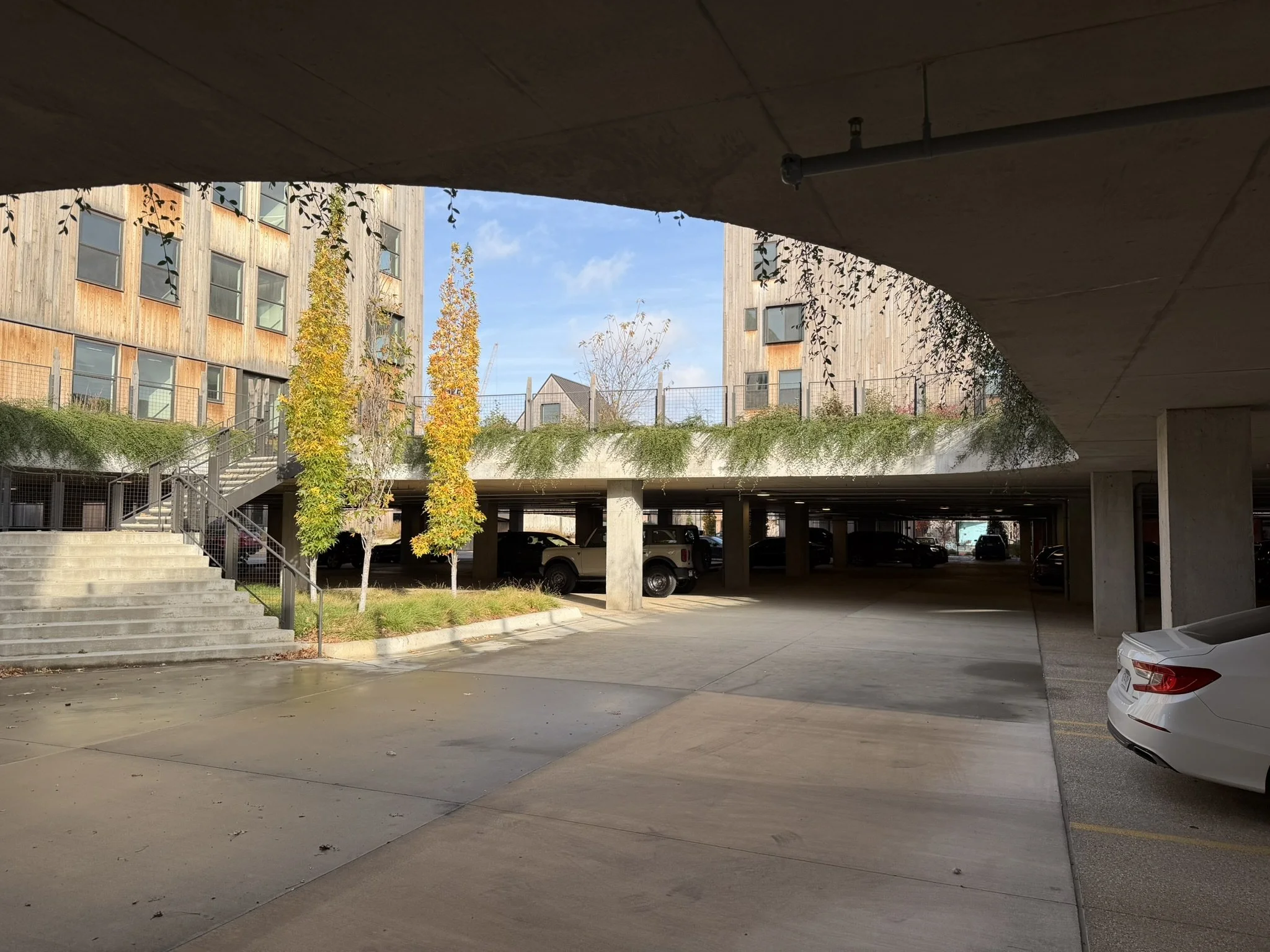 REDUCE PARKING IMPACT: satisfy parking requirements by introducing on-street parking and aggregating the remainder of spaces under a simple podium. The aggregated parking area doubles as a flexible landscape for events such as farmer’s markets.