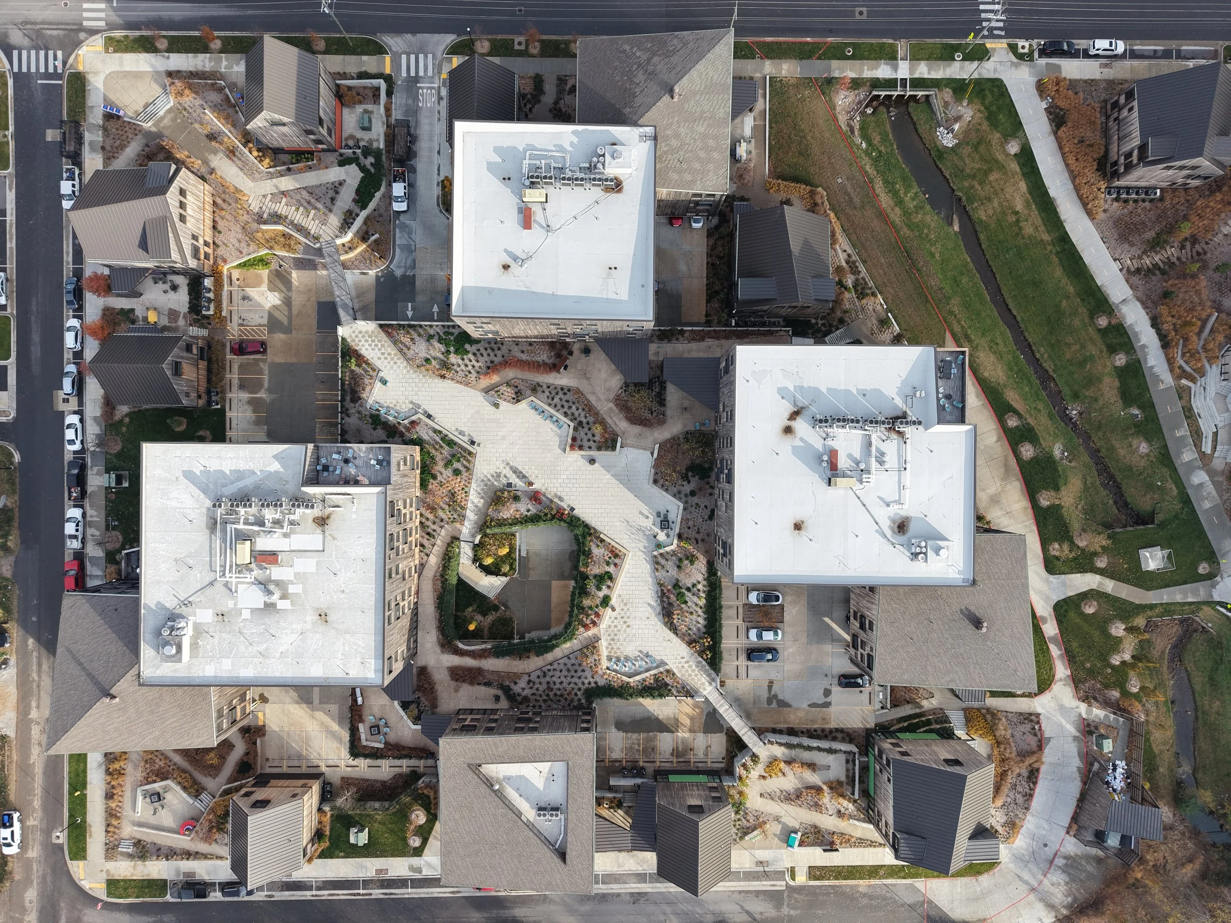 NEIGHBORHOOD LANDSCAPE: contribute to the surrounding neighborhood character which is defined by trees, lawns, parks, and trails that integrate into the regional network of natural amenities.